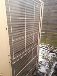 Das heißt in meinem Fall: Bei dieser Leistung strömen ca. 9000m³/h durch das Register der Wärmepumpe. Um eine komplette Vereisung zu vermeiden durchläuft die Anlage regelmäßig sogenannte "Abtauphasen".