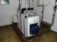 Wie auf den Bildern zu sehen ist, müssen nicht alle Komponenten immer vom gleichen Hersteller sein. Der Kessel von Wolf, der Brenner von Buderus und die Regeleinheit von OEG.